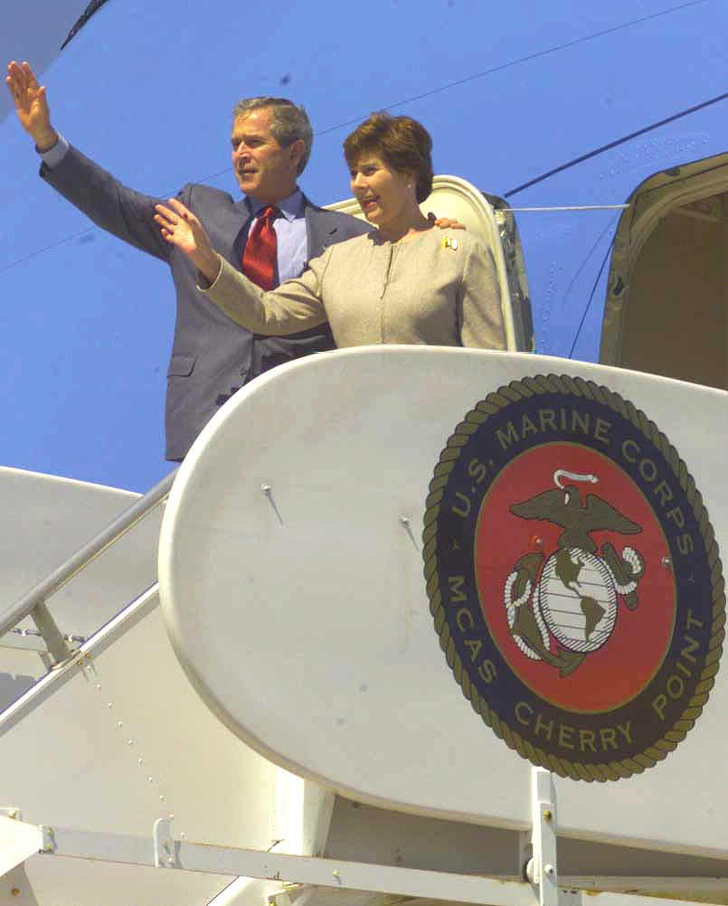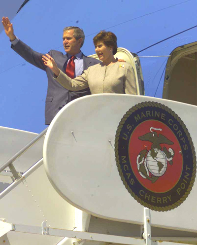 and first lady Laura Bush, greet Marines aboard Cherry Point before