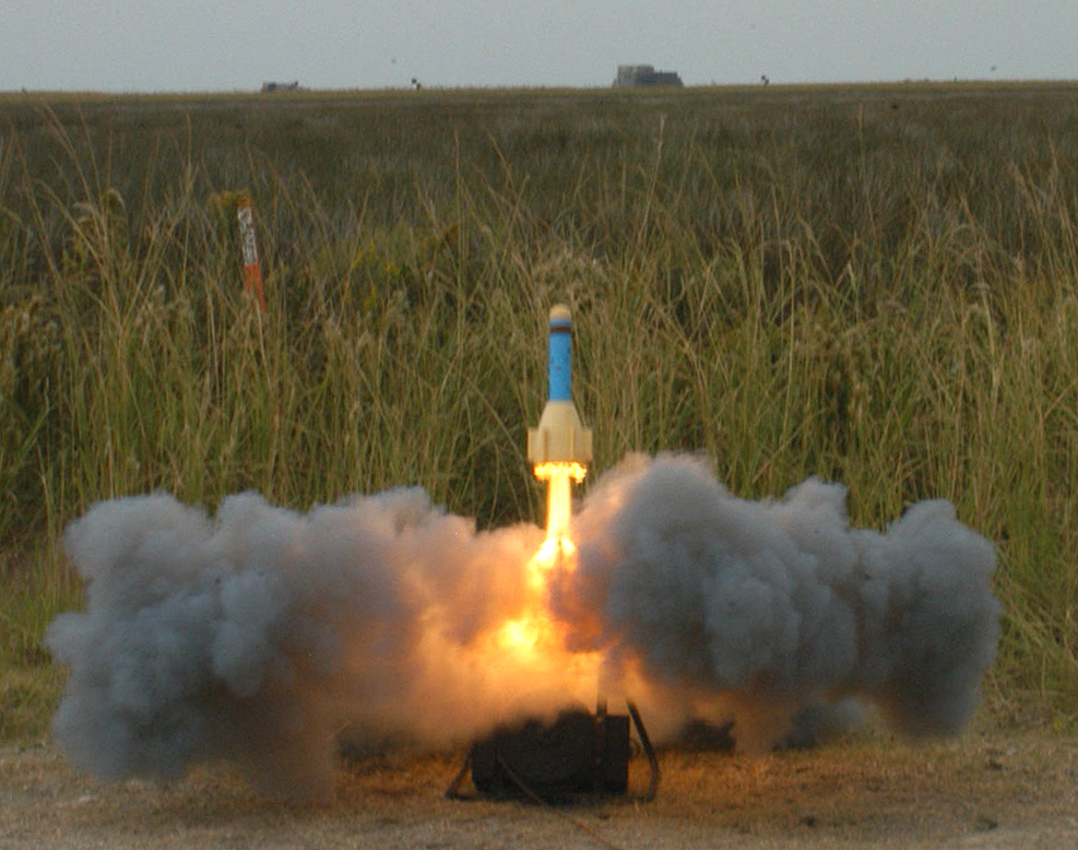SAM is fired as an F/A-18 flies overhead. Smokey SAMs train pilots how